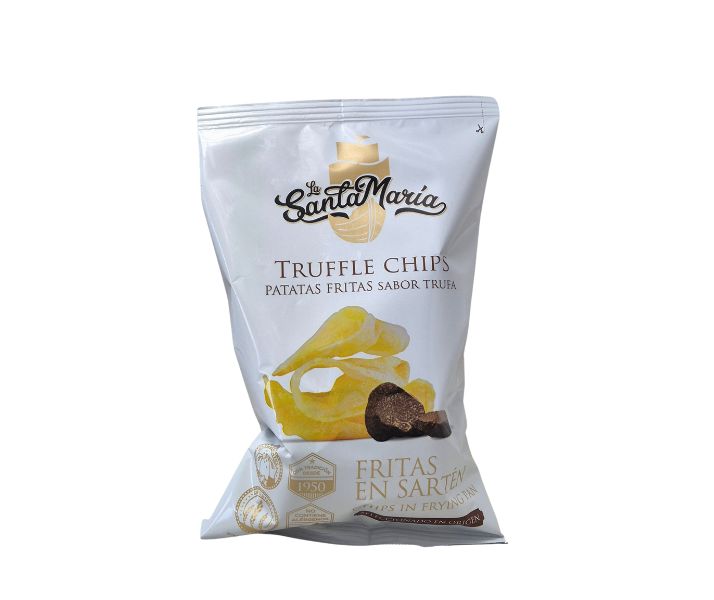 Zutaten: Kartoffeln, Sonnenblumenöl, Trüffelaroma (Maltodextrin, Hefeextrakt, Salz, Gewürze, kolloidale Kieselsäure, Sommertrüffel dehydriert (0,33%) (Tuber aestivum Vitt) und Salz.